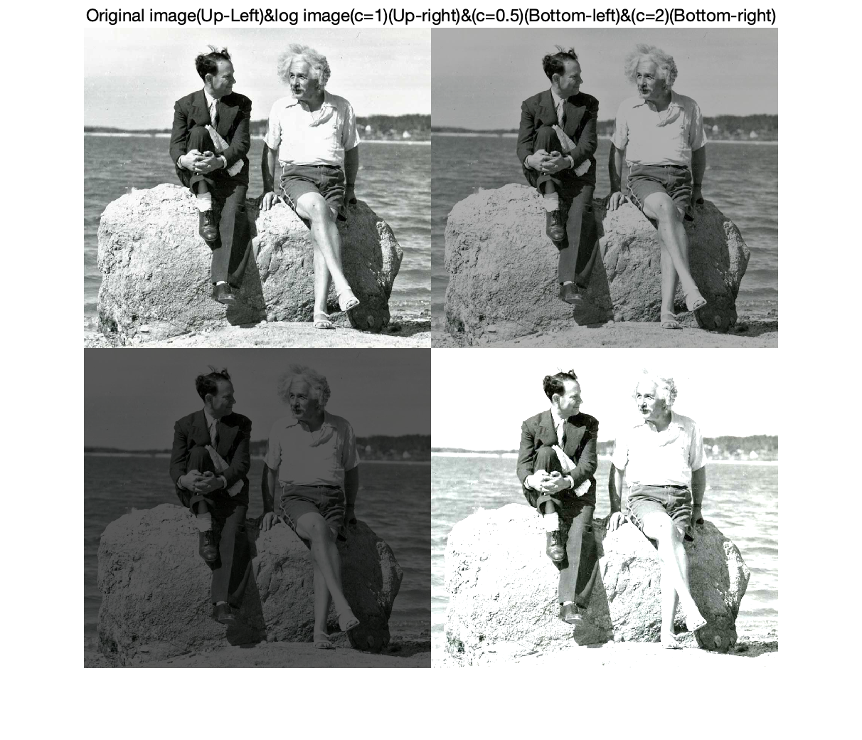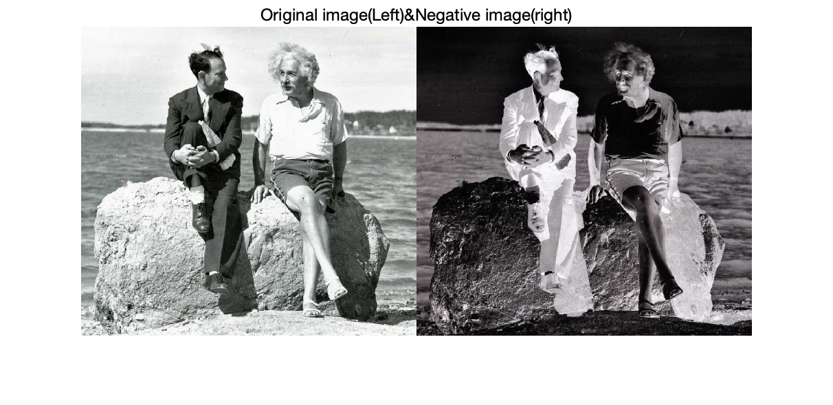 먼저 위의 함수를 구현하면 됩니다. input은 입력 영상, L은 입력 영사이 가지는 최대 밝기를 의미합니다. 저는 예제로 uint8 타입의 영상을 사용했기 때문에 $L = 255$이 됩니다. 실제로 결과를 보도록 하겠습니다. 사진은 구글에서 제가 좋아하는 아인슈타인 사진을 이용하였습니다.