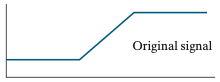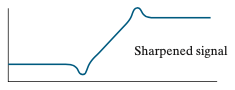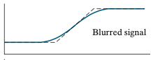 필터를 통해 블러링을 수행했기 때문에 입력 데이터에서 값이 변하는 지점은 약간 뭉툭해질것입니다. 이를 영상으로 생각해보시면 쉽게 이해할 수 있습니다. 영상에 블러링을 취하게 되면 영상 내의 엣지가 약간 흐려지는 현상을 보셨을 겁니다. 바로 그 현상을 1차원적으로 표현하면 위와 같이 그릴 수 있습니다.