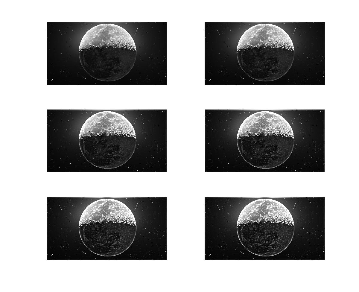 하이부스트 필터링에서 $k$ 값이 커질수록 달의 아랫부분, 즉 그림자 부분에서 잘 보이지 않던 부분과 크레이터, 그리고 달의 윤곽선이 훨씬 진해지는 것을 관찰할수 있습니다.