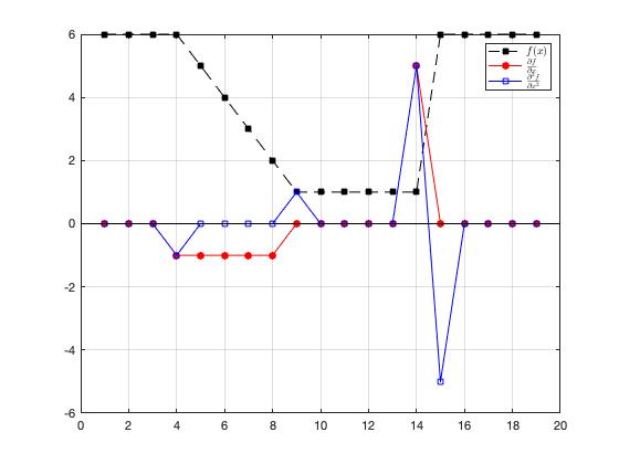 데이터는 교재에 나온 그대로 입력을 넣어보았습니다. 그래고 특히 step 지점에서 zero crossing 현상이 발생하고 있는 것을 볼 수 있습니다. 저희는 이러한 개념을 토대로 다차원의 2차 미분인 라플라시안을 활용하는 방법을 적용하였습니다.
