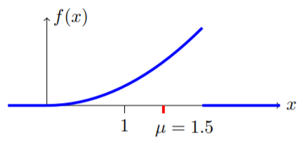 참고로 기댓값은 전체 확률밀도함수에서 중앙에 가까운 위치에 있을 것으로 예상됩니다. 실제로 그림을 그려보면 아래의 그림이 될 것으로 예상할 수 있죠.