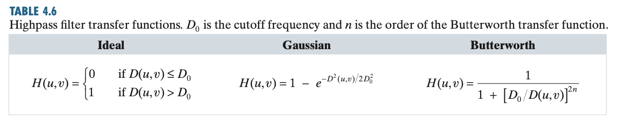 $$ g(x, y) = \mathcal{F}^{-1}\{\left[k_{1} + k_{2} * H_{\text{HP}}(\mu, \nu)F(\mu, \nu)\right]\}$$