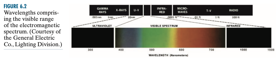 하지만, 좀 더 현실적으로 색채 광을 다룬다고 했을 때 EM 스펙트럼에서 400nm~700nm 사이에 걸쳐있습니다. 무채색 광은 빛의 양이 유일한 수량이였지만 색채 광에서는 3가지 수량이 사용됩니다. 각각 방사 휘도(Radiance), 휘도(Luminance), 명도(Brightness)라고 합니다.