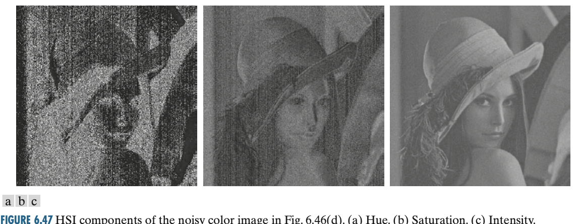 다만, V 채널은 R, G, B 채널의 평균이기 때문에 RGB의 각 칼라 성분에 비해서 노이즈가 적다는 것을 관찰할 수 있습니다. 다른 노이즈 모델도 마찬가지로 칼라 공간을 변환하면 해당 칼라 공간에서도 노이즈가 발생하게 됩니다.