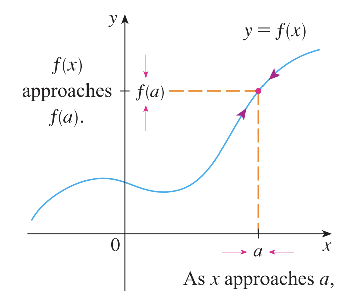 함수 $f$가 임의의 양수 $\epsilon > 0$에 대해서 $|x - a| < \delta$일 때 $|f(x) - f(a)| < \epsilon$을 만족하는 $\delta > 0$가 존재하면 함수 $f$는 $x = a$에서 연속이라고 한다.