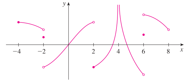 $x = -4$ : $\lim_{x \rightarrow -4} f(x) \neq f(-4)$