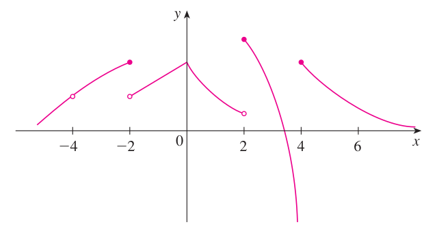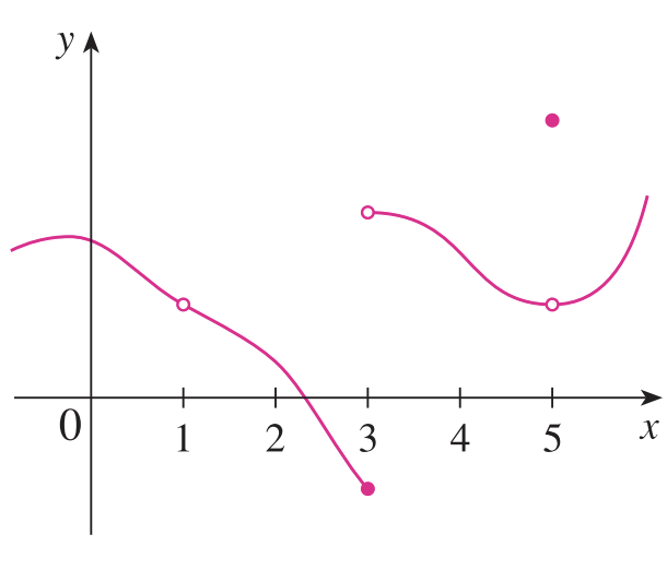 $x = 2$ : $\lim_{x \rightarrow 2^{-}} f(x) \neq \lim_{x \rightarrow 2^{+}} f(x)$