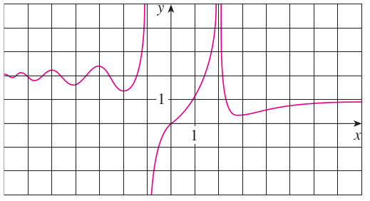 (f). 함수 $f$의 점근선 : $x = -1, x = 2, y = 2, y = 1$