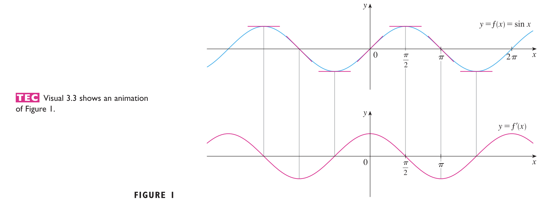 따라서 $\frac{d}{dx}(\sin{(x)}) = \cos{(x)}$입니다. 이를 기반으로 더 복잡한 형태의 함수의 도함수까지 유도할 수 있습니다.
