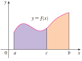 $$\int_{a}^{c} f(x) \; dx + \int_{c}^{b} f(x) \; dx = \int_{a}^{b} f(x) \; dx$$
