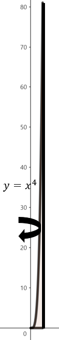 따라서, $y = x^{4}, y = 0, x = 3$으로 둘러쌓인 영역을 $y$축을 중심으로 회전한 회전체의 부피를 의미한다.
