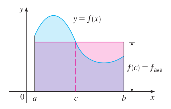 함수 $f$가 닫힌 구간 $[a, b]$에서 연속이라고 하면 $f(c) = f_{avg} = \int_{a}^{b} f(x) \; dx$를 만족하는 $c$가 구간 $[a, b]$ 사이에 존재한다.