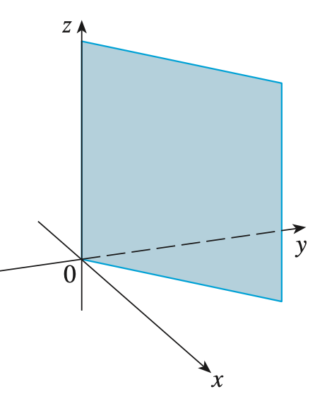 위의 그림은 $y = x$를 3차원으로 그린것입니다. 주어진 제한은 오직 $x = y$이기 때문에 $z$의 값에 관계없이 평면이 형성되는 것을 볼 수 있습니다.