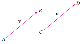 그렇다면 두 벡터가 "같다"라는 것은 어떤 것을 의미할까요? 스칼라에서는 크기만 고려하면 되기 때문에 오직 두 스칼라의 크기만 같으면 그냥 같습니다. 하지만 벡터에서는 방향성까지 고려하기 때문에 크기가 같더라도 방향이 다르면 다른 벡터입니다. 따라서, 두 벡터가 같다는 것은 크기와 방향이 모두 동일하다는 것을 의미합니다. 만약, 두 벡터가 같다면 $\mathbf{u} = \mathbf{v}$라고 쓸 수 있습니다.