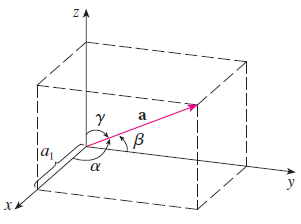 $$\cos(\alpha) = \frac{a_{1}}{\left|\mathbf{a}\right|}, \cos(\beta) = \frac{a_{2}}{\left|\mathbf{a}\right|}, \cos(\gamma) = \frac{a_{3}}{\left|\mathbf{a}\right|}$$