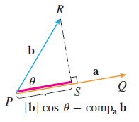 $$\text{comp}_{\mathbf{a}} \mathbf{b} = \frac{\mathbf{a} \cdot \mathbf{b}}{|\mathbf{a}|}$$