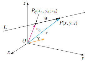 $$\mathbf{r} = \mathbf{r}_{0} + \mathbf{a} = \mathbf{r}_{0} + t\mathbf{v}$$