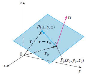 $$\mathbf{n} \cdot \vec{P_{0}P} = \mathbf{n} \cdot (\mathbf{r} - \mathbf{r}_{0}) = 0 \Rightarrow \mathbf{n} \cdot \mathbf{r} = \mathbf{n} \cdot \mathbf{r}_{0}$$