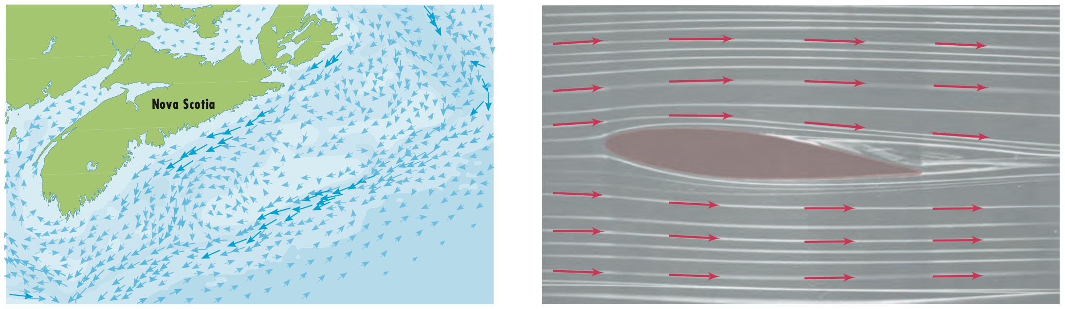 다른 예시로는 위 그림과 같이 해류의 방향과 공기의 순환 방향을 예로 들 수 있습니다.