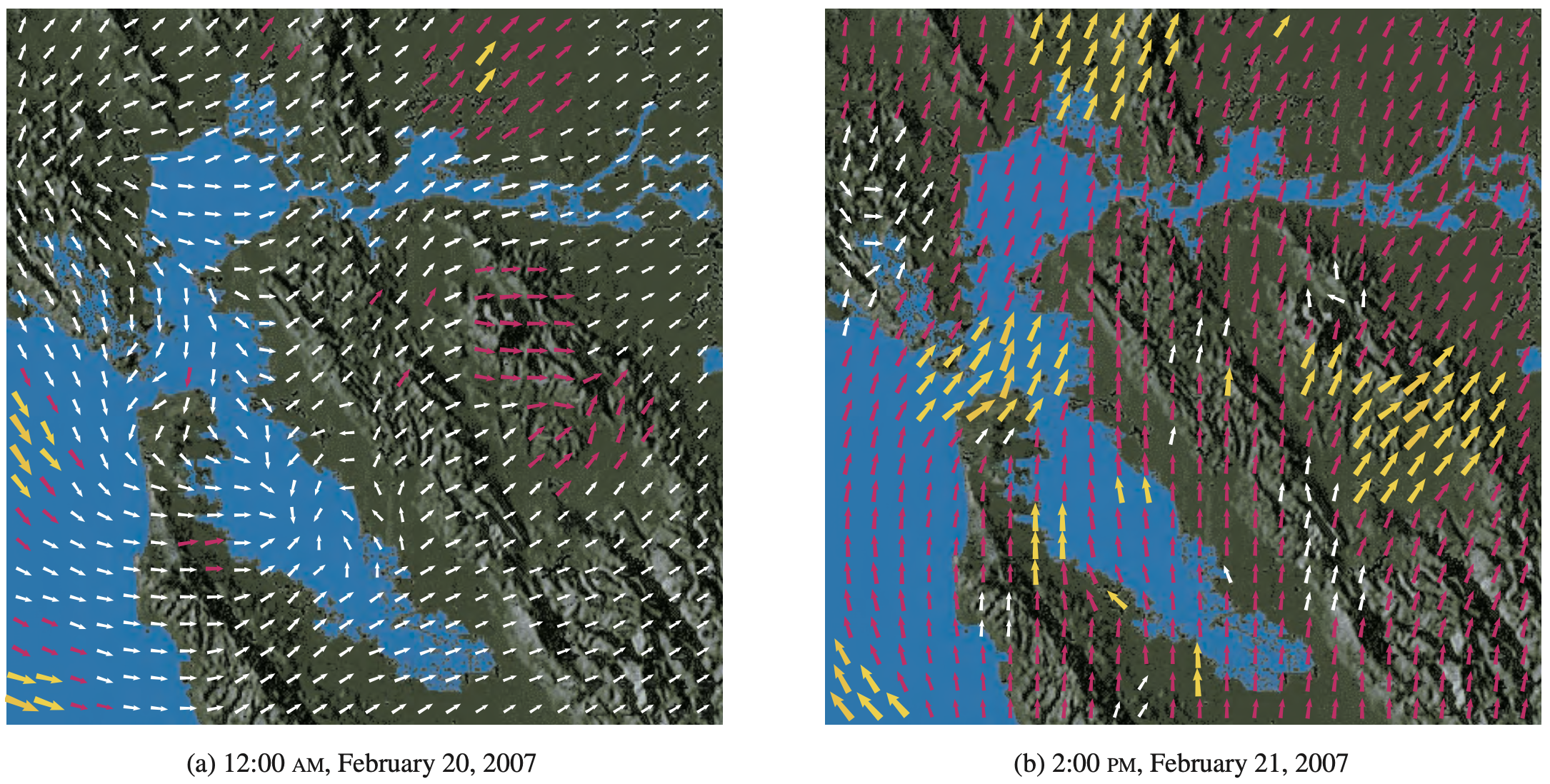 여러분들이 가장 흔히 보시는 벡터장은 위와 같이 기상뉴스에서 각 위치에 따른 바람의 방향입니다.