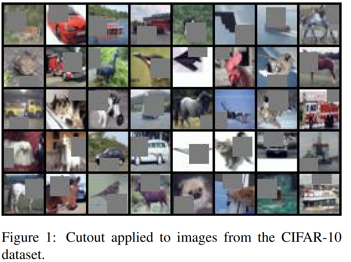 안녕하세요. 오늘 리뷰할 논문은 'Improved Regularization of Convolutional Neural Networks with CutOut'로 arxiv에 공개적으로 출판되어있는 논문입니다. 해당 논문은 제목에서도 알 수 있다싶이 Data Augmentation 중 CutOut이라는 방법을 제안한 논문입니다.