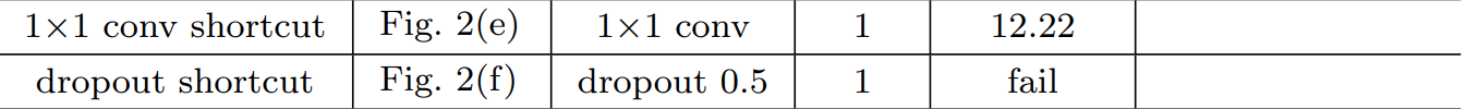 일반적으로 비선형성과 DropOut을 추가하면 성능이 오르는 것으로 알고 있습니다. 본 논문에서는 마지막으로 Shortcut에 $1 \times 1$ 합성곱 계층과 DropOut을 추가하여 학습을 해보죠.