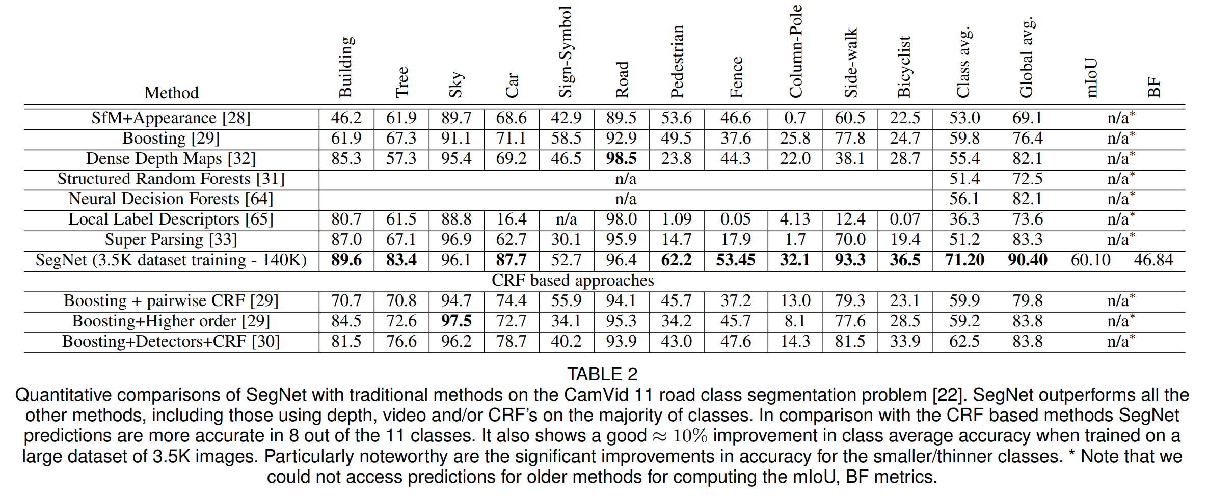 2). Qualitative comparisons of traditional methods and SegNet