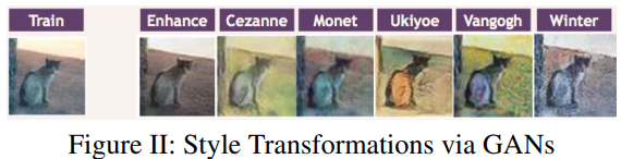 나중에 GAN 관련 논문들도 리뷰하겠지만, 혹시 styleGAN에 대해서 들어보셨는지 모르겠습니다. 그림2와 같이 영상의 세세한 정보 (예를 들어, 날씨, 밤낮, 화가의 화풍)를 다른 영상으로 옮겨서 새로운 영상을 만드는 GAN입니다. 본 논문에서는 이 styleGAN을 이용해서 실험할 때 데이터 증강만을 위한 손실함수를 구성하는 것이 중요하다는 것을 강조합니다.