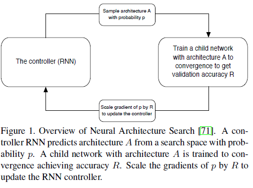 여기서 중요한 것은 NAS가 이전에도 제안되었다는 점 입니다. 하지만, 이전에 NAS를 ImageNet을 적용하였기 때문에 굉장히 오랜시간 동안 학습을 수행해야하기 때문에 비효율적이라는 것 입니다. 실제로 본 논문에서 제안하는 NASNet을 찾는 데 약 4일 정도 걸렸는데, 이 시간이 기존의 NAS 방법보다 7배나 빠른 방법이라고 합니다. 즉, 이전 방법은 거의 1달동안 학습했다는 점이죠. 즉, 본 논문에서 제안하는 NASNet은 기존의 NAS를 빠르고 효율적으로 학습하는 방법입니다.