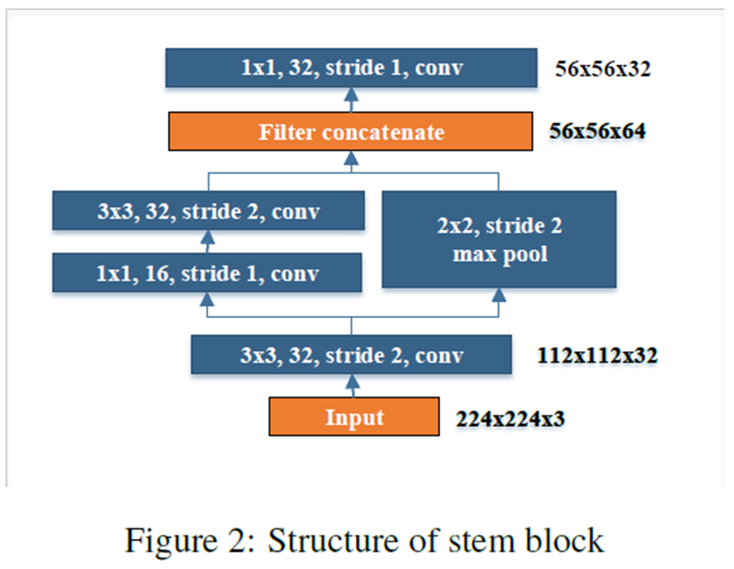 그림2는 본 논문에서 제안하는 Stem Block의 블록 다이어그램을 보여주고 있습니다. 이 방법은 InceptionNet-V4의 Stem Block을 활용하고 있습니다.