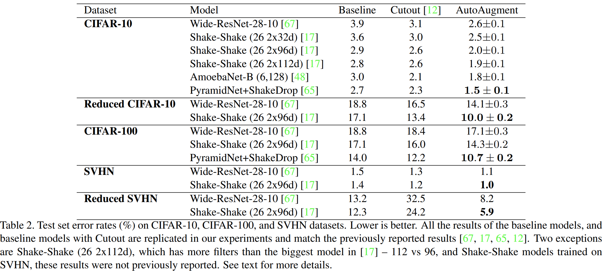 기본적으로 데이터 증강은 주어진 데이터 도메인에 대해서 불변성을 향상시키는 것을 목표로 합니다. 예를 들어서, 같은 고양이 사진이라고 해도 회전된 고양이 영상을 입력받으면 예측을 하지 못하는 경우가 있기 때문이죠. 그런데 1번 데이터셋에 적용한 데이터 증강은 새로운 데이터셋에 적용하면 학습이 제대로 안되는 경우가 있습니다. 대표적으로 CIFAR10의 데이터 증강으로 회전, 수직 및 수평 뒤집기를 적용했다고 가정하겠습니다. CIFAR10에서는 문제없이 잘 학습이 될겁니다. 이제 이 데이터 증강을 MNIST에 적용해보면 성능이 떨어지게 됩니다. 왜냐하면 "6"과 "9"는 서로 수직 뒤집기하면 동일해지기 때문이죠. 이로 인해 데이터셋에 따른 최적화된 데이터 증강 정책 (policy)가 필요하게 됩니다.