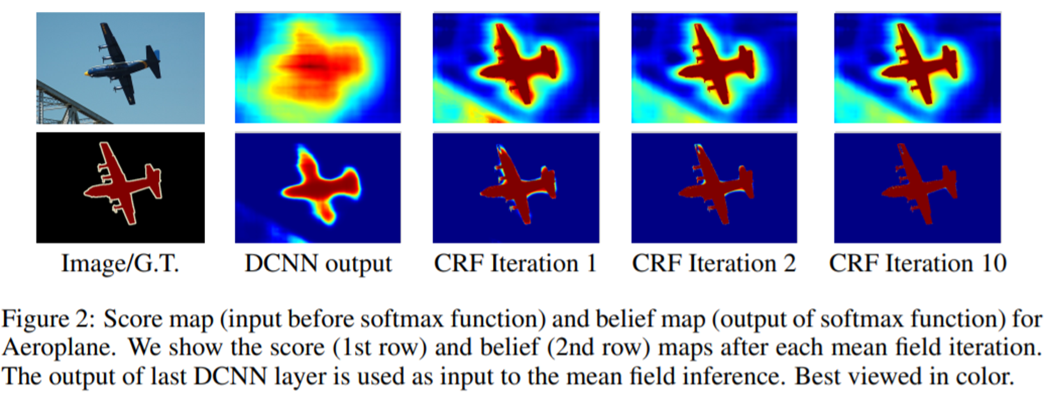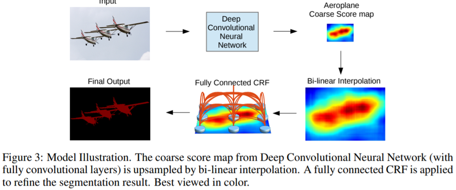 이렇게 특징 맵들을 추출하고 난 뒤 줄어든 해상도를 bilinear interpolation을 통해 입력 영상과 동일하게 맞추어준 뒤 CRF를 적용하여 후처리까지 해주면 됩니다.