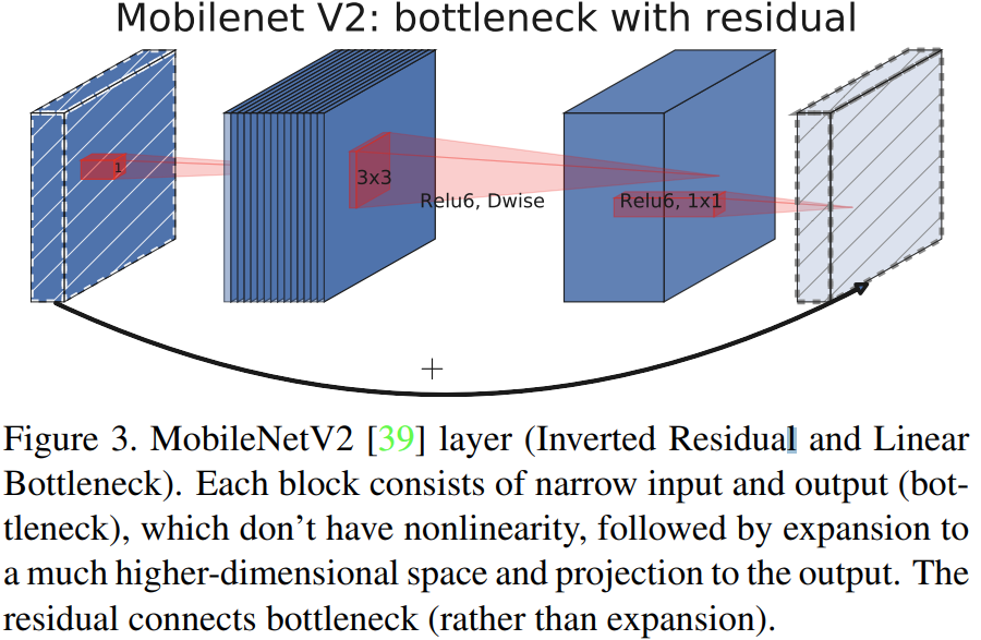 위 그림에서 (a)는 전형적인 합성곱 연산, (b)는 깊이별 합성곱 연산, (c)는 포인트별 합성곱 연산을 보여주고 있습니다. 기본적으로 DSC는 깊이별 및 포인트별 연산을 분해하여 사용하기 때문에 연산량이 필터 크기의 제곱만큼 단일 계층에서 감소하게 됩니다. 하지만, MobileNetV1의 문제는 성능하락폭이 너무 큰게 문제였죠.