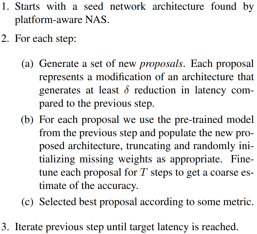 본 논문에서는 이를 위해 NetAdapt 알고리즘을 이용합니다. 기본적인 NetAdapt 알고리즘은 다음과 같이 동작합니다.