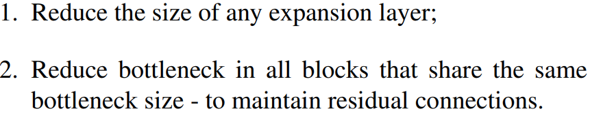 NetAdapt 알고리즘에서는 proposal이라는 개념이 있습니다. 이는 단순히 NAS에서 모델과 같은 것이라고 보면 됩니다. 이 단계 역시 궁극적인 목표는 정확도는 최대한 보존하되 모델의 레이턴시는 줄이는 것이 목표입니다. 따라서, 기존의 목표함수인 $\Delta ACC$를 최소화하는 것이 아니라 $\frac{\Delta ACC}{\Delta latency}$를 최대화하는 것을 목표료 합니다. 이 과정에서 허용하는 연산은 크게 두 가지 입니다.