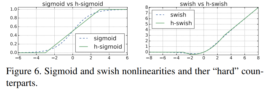 마지막으로 저자는 quantization-friendly한 비선형 모델을 만들기 위해 hard-swish 함수를 제안합니다. 기존의 sigmoid 함수는 곡선 형태이기 때문에 미분과정이 복잡하지만 hard sigmoid 함수는 구간 별로 전부 미분이 상수이기 때문에 연산량에서 훨씬 빠릅니다. 이를 hard swish 함수에 적용하는 것이죠.