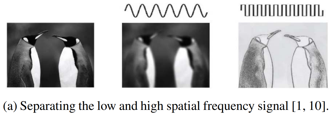 위 그림을 한번 봐주시길 바랍니다. 일반적으로 신호에서 저주파 및 고주파 신호를 나누듯이 영상에서도 위와 같이 나누어서 생각해볼 수 있습니다. 이때, 저주파 영상은 주로 주변 픽셀값 사이의 차이가 크게 나지 않은 smooth한 영역을 의미합니다. 반대로 고주파 영상은 차이가 큰 sharp한 영역을 의미하죠. 그래서 위 그림과 같이 고주파 영상은 주로 객체의 가장자리 영역을 얻게 됩니다. 이때, 중복되는 특징을 많이 가지는 부분은 어디일까요? 아무래도 저주파 영역이 고주파 영역보다 유사한 정보들이 더 많이 모여있을 것 으로 예상됩니다. 따라서, 본 논문에서 제안하는 새로운 합성곱 연산은 2개의 단계로 나눌 수 있습니다. 1). 저주파 및 고주파로 분해한 뒤 2). 각 저주파 및 고주파 영상에 대한 합성곱 연산을 수행하는 것이죠.