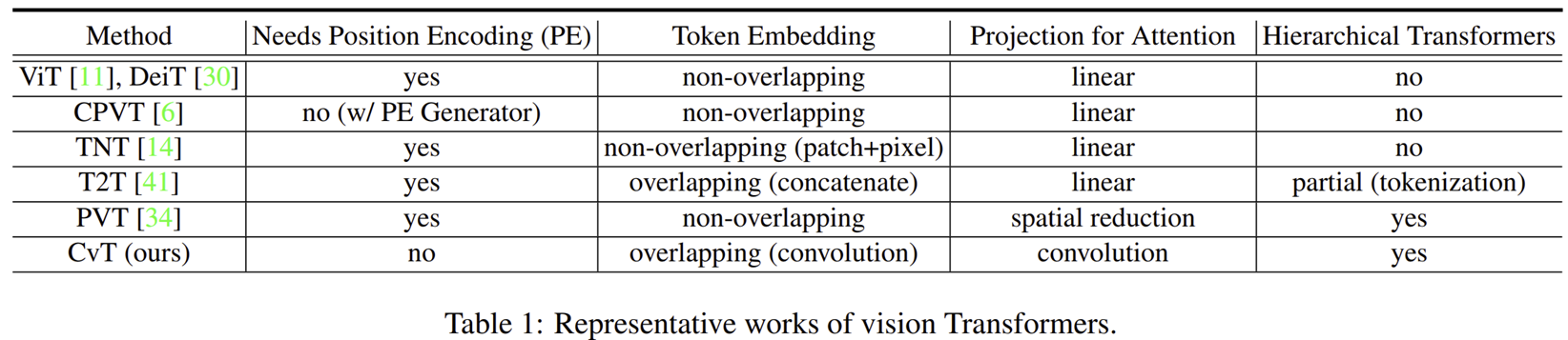 - 기존 Vision Transformer 구조에 처음으로 Convolution 연산을 결합한 모델인 Convolution to Vision Transformer (CvT)를 제안