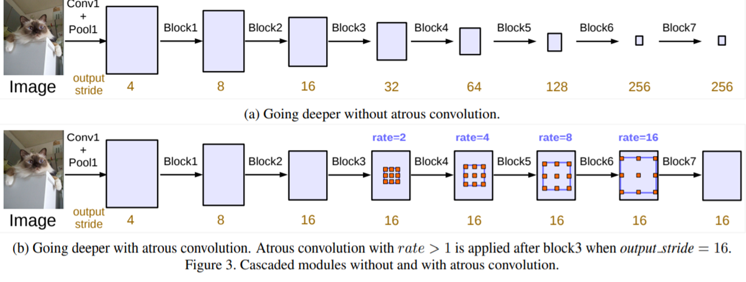 기본적으로 DeepLabV3 역시 DeepLabV1과 DeepLabV2와 마찬가지로 동일한 challenge를 공유합니다. 이 부분은 지난 포스팅을 참고해주시면 감사하겠습니다. 하지만, 점점 심층 신경망이 발달함에 따라서 예측 결과의 후처리 필요성에 대한 문제점이 대두되었습니다. DeepLabV2까지 사용하던 Fully Connected CRF는 전체 픽셀간 관계성을 기반으로 알고리즘이 수행되기 때문에 생각보다 많은 연산량이 필요합니다. 이러한 문제를 해결하기 위해 DeepLabV3에서는 후처리 과정을 아예 빼기로 결정합니다. 대신 ASPP 모듈을 약간 손보게 됩니다. 오늘은 이 부분을 중점적으로 보도록 하겠습니다.