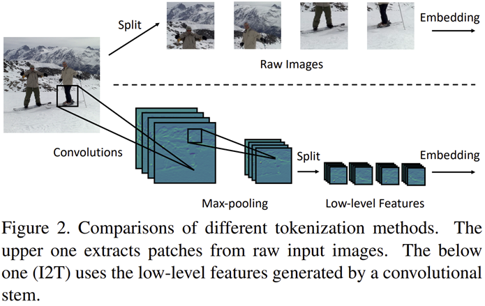 하지만, 이와 같이 추출된 패치는 패치간 관계성이 존재하지 않을뿐만 아니라 영상으로부터 저수준 특징을 얻을 수 없습니다. 실제로 ViT 논문에서도 대용량의 데이터셋을 이용해서 학습해야지만 CNN과 같은 저수준 특징을 학습할 수 있다는 것을 언급하였죠.
