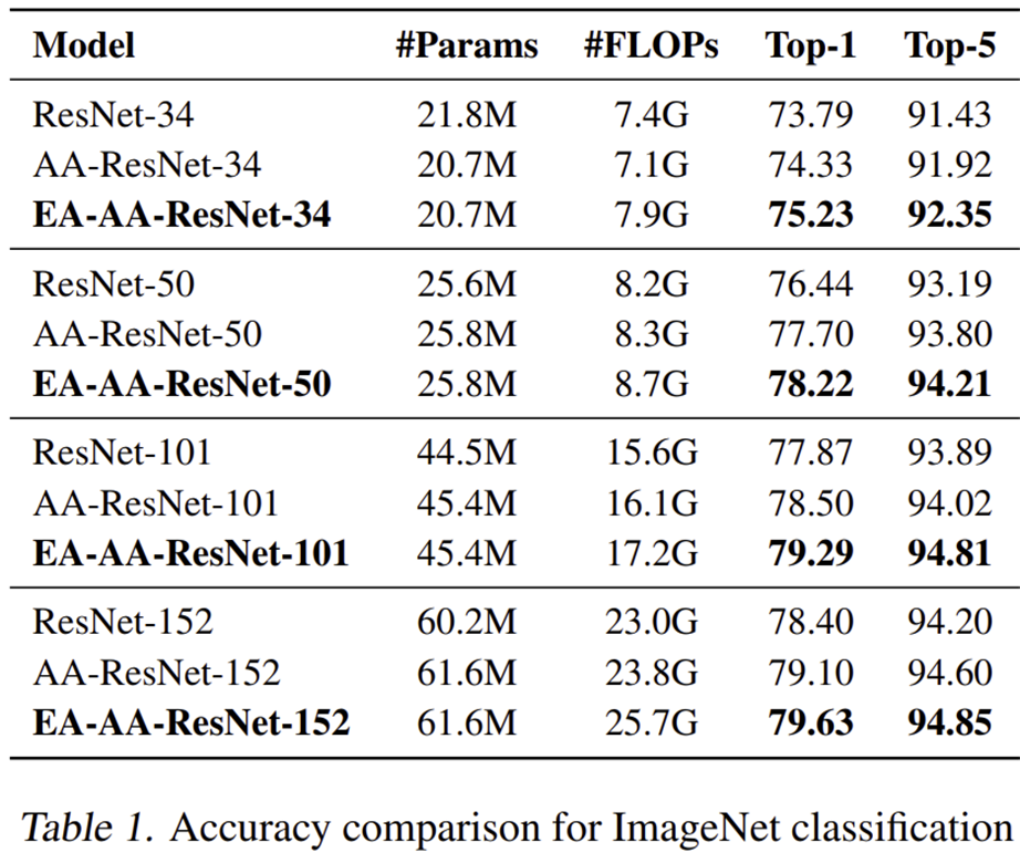 지금까지 저희는 다양한 어텐션 기반 모델들을 보았습니다. 하지만 이러한 어텐션 블록을 모델에 적용한다고 하더라도 문제는 항상 효과적이고 설명가능하지 않다 (예를 들어 백그라운드에 가중치가 많이 들어가는 경우를 의미하는 거 같습니다.)는 문제점이 존재합니다. 이러한 문제를 해결하기 위해 Attention-Augmented (AA) ResNet에서는 Transformer에서 활용되는 Self-Attention 매커니즘을 CNN에 결합하여 해결하기도 하였죠. 본 논문에서는 이와 같이 AA ResNet에서 사용되는 Self-Attention 매커니즘을 개선하는 방법에 대해서 제안합니다.