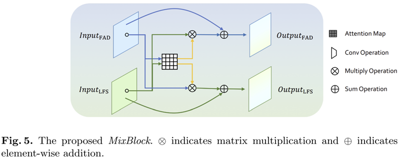 마지막으로 FAD와 LFS 단계에서 추출한 두 특징을 서로 cross-attention을 수행하기 위해 MixBlock인 그림 5를 제안합니다. 본 논문에서는 ImageNet에 사전학습된 총 12개의 블록으로 구성된 Xception 모델을 backbone 모델로 사용하였습니다. 실험적으로 7번과 12번 블록에서 MixBlock을 사용했을 때 성능이 가장 높게 나왔다고 하네요. 손실함수는 이진 분류를 위한 cross-entropy loss를 사용하였으며 end-to-end 방식으로 학습을 진행하였다고 합니다.