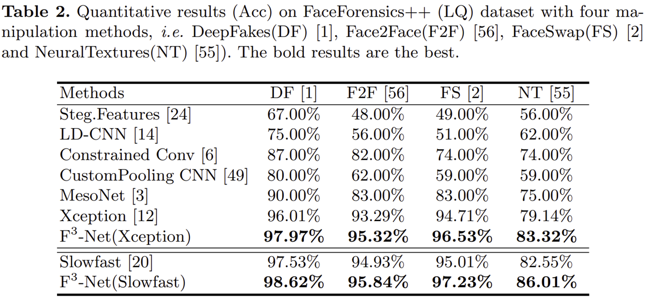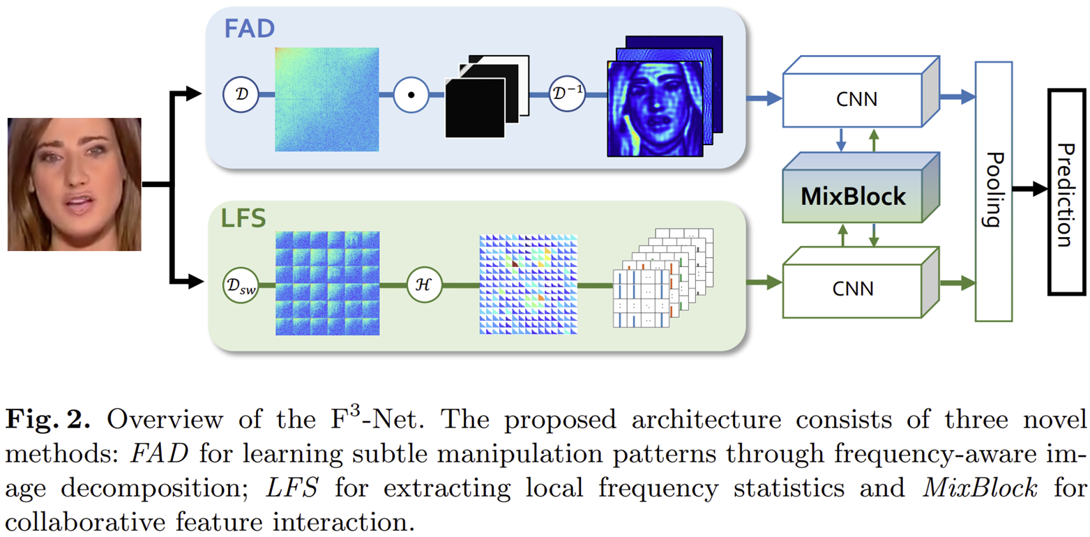 안녕하세요. 지난 포스팅의 [Forgery Detection & Segmentation] FaceForensic++: Learning to Detect Manipulated Facial Images (ICCV2019)에서는 Face Forgery Detection에 특화된 데이터셋인 FaceForensic++ (FF++)에 대한 설명을 진행하였습니다. 오늘은 FF++를 활용하여 Face Forgery Detection을 수행하는 $F^{3}$-Net에 대해서 소개하도록 하겠습니다.