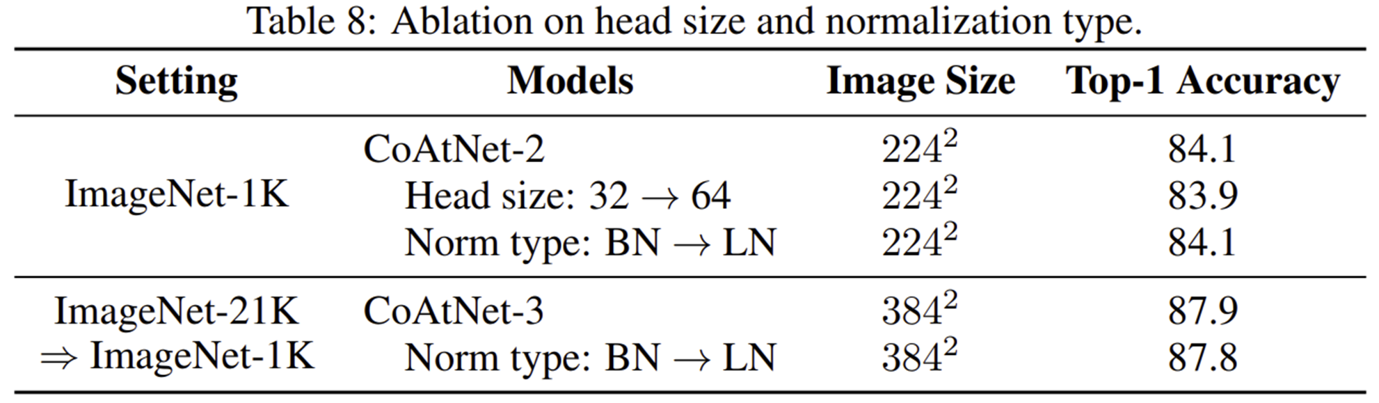 2-3) Head Size & Normalization Type