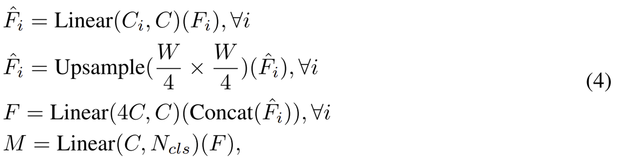 단순히 각 스테이지에서 얻은 특징 맵들을 MLP를 한번씩 통과한 뒤 concat하여 MLP를 한번더 통과시켜 prediction을 수행하는 아주 단순한 구조입니다.