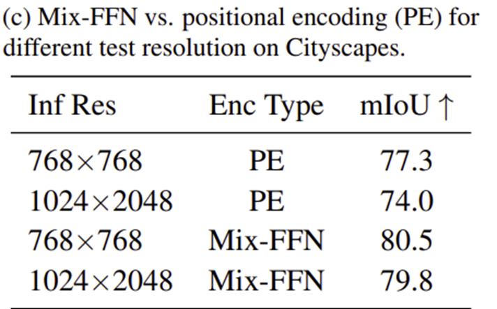 ViT는 패치 내의 지역적 정보를 주입하기 위해 positional embedding을 적용하였습니다. 하지만 ViT에서 사용되는 positional embedding 벡터의 길이는 고정되어 있기 때문에 다른 해상도를 가진 영상이 입력되면 interpolation해야하는 문제점이 존재하고 이는 학습된 정보가 손실되는 문제점으로 이어지게 됩니다. 따라서 이전 Transformer 모델들과 마찬가지로 FFN 내에 depth-wise convolution을 도입하여 positional embedding 없이도 convolution의 inductive bias를 도입하였습니다.