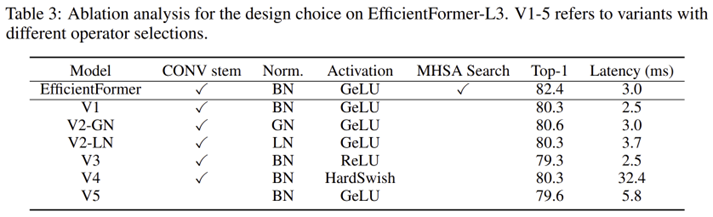 Observation 3: CONV-BN is more latency-favorable than LN (GN)-Linear and the accuracy drawback is generally acceptable.