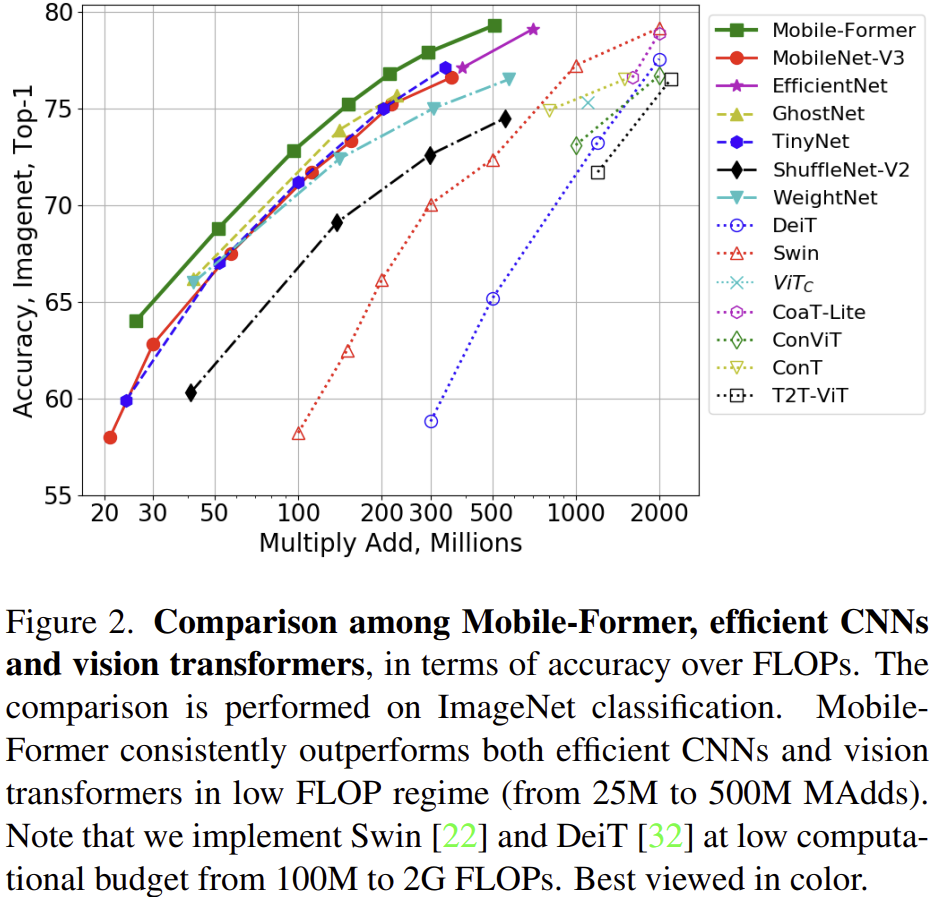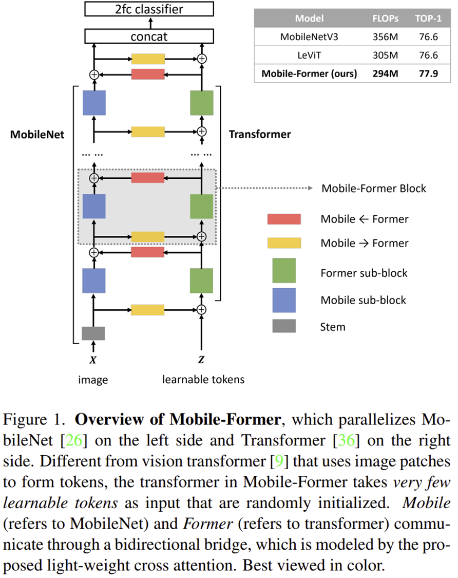 안녕하세요. 지난 포스팅의 [IC2D] EfficientFormer: Vision Transformer at MobileNet Speed (NIPS2022)에서는 기존의 ViT 계열 모델들이 on device 상에서의 speed bottleneck에 대한 분석을 하지 않았다는 점에 근거하여 저자들이 관찰한 결과를 기반으로 효율적인 EfficientFormer를 제안하였습니다. 오늘도 새로운 ViT 계열 모델로서 지금까지 보았던 방법론과는 조금 다른 방식으로 설계한 Mobile-Former를 소개하도록 하겠습니다.