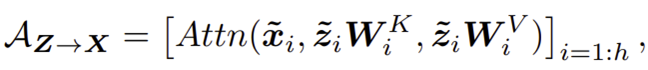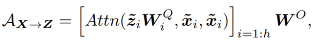 Mobile-Former의 두번째 특징은 Mobile & Former 간의 bidirectional communication이 존재하여 local feature와 global feature가 서로 fusion 된다는 점입니다. 이 과정에서 연산량의 증가를 우려하여 Light-weight cross attention module을 설계하였으며 이는 기존의 self-attention을 수행할 때 3개의 projection matrix $\mathbf{W}^{Q}, \mathbf{W}^{K}, \mathbf{W}^{V}$를 두 stream에서 동시에 쓰는 것이 아니라 Mobile $\rightarrow$ Former에서는 $\mathbf{W}^{K}, \mathbf{W}^{V}$만 사용하고 Former $\rightarrow$ Mobile에서는 $\mathbf{W}^{Q}$만 사용하는 것입니다. 이때, 각 cross-attention 시 multi-head attention까지 고려하여 다음과 같이 쓸 수 있습니다.