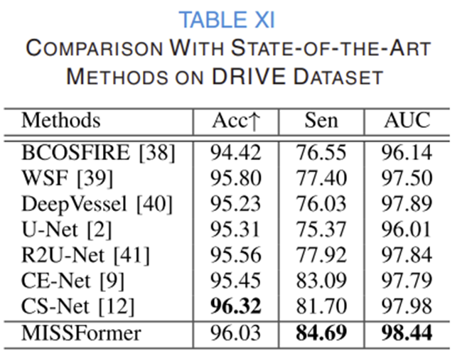 - Synapse(다중 장기), ACDC(심장), DRIVE(망막 혈관) 등 다양한 의료 이미지 데이터셋에서 MISSFormer가 기존 최신 기법들보다 뛰어난 성능과 높은 일반화 성능을 가짐을 실험적으로 입증했습니다.
